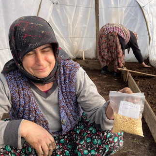 Mart 2022’de Çanakkale’nin Ayvacık ilçesine bağlı Süleymanköy’de ekip arkadaşlarımız Burcu ve Mustafa, komşularımız Zekiye Abla, Yılmaz, Şerifahmet ve Resul Abi ile birlikte yaklaşık 4 bin fide yetiştirebilecek küçük bir sera kurdular. Ağaç dalları ve atık brandalar kullanılarak inşa edilen yaklaşık 20 metrekarelik bu mini deneme serasına ilk tohumlar martta ekildi. Çanakkale Belediyesi Tohum Sandığı'ndan edindiğimiz tohumların yanı sıra köyde komşulardan topladığımız atalık tohumları da ektik. Başta domates olmak üzere salatalık, kabak, patlıcan ve biberin farklı türlerinden fideler yetiştirdik.
